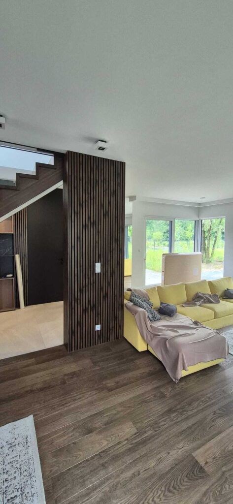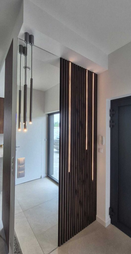 Проект в Надажине, в 10 км от Варшавы — вдохновляющее преображение жилого пространства. В рамках ремонта был расширен дверной проем, обновлен интерьер и создано комфортное, стильное пространство для жизни. Современные решения, внимание к деталям и ориентация на потребности клиента стали основой этого проекта.