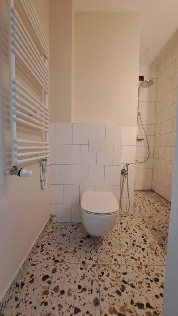 Проект в Варшаве, район Вавер. Проведена отделка ванной комнаты, совмещенной с санузлом, установлена сантехника и выполнена отделка кухни с монтажом кухонного оборудования. В результате получено функциональное и аккуратное пространство, готовое к эксплуатации.